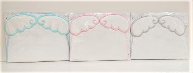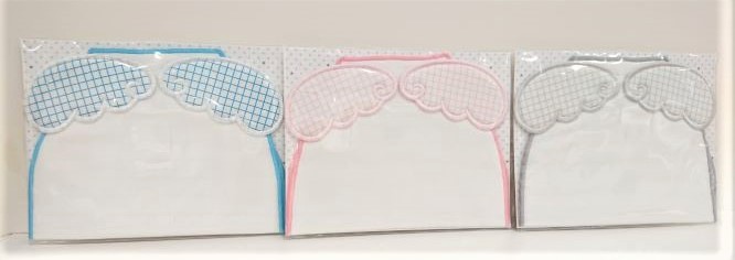 羽が出るタイプは、ボリボン・ウーフさんが数年前からやっていますが、他メーカーさんでもいろんな種類の汗取りガーゼが作られています(銀座いさみやでは、この羽根タイプのみ)